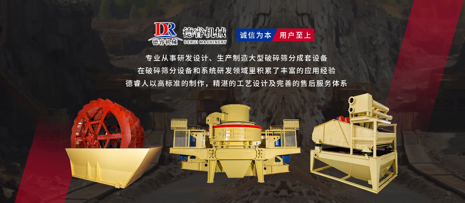 “誠信為本,用戶至上”德睿人以高標準的制作,精湛的工藝設計及完善的售后服務體系在破碎篩分設備和系統(tǒng)研發(fā)領域里積累了豐富的應用經(jīng)驗。借助在破碎行業(yè)的豐富經(jīng)驗,公司可向客戶提供碎石制砂生產(chǎn)線設計、安裝、調試等交鑰匙工程,同時承接破碎系統(tǒng)的爆破、裝運、破碎等生產(chǎn)運行總承包。